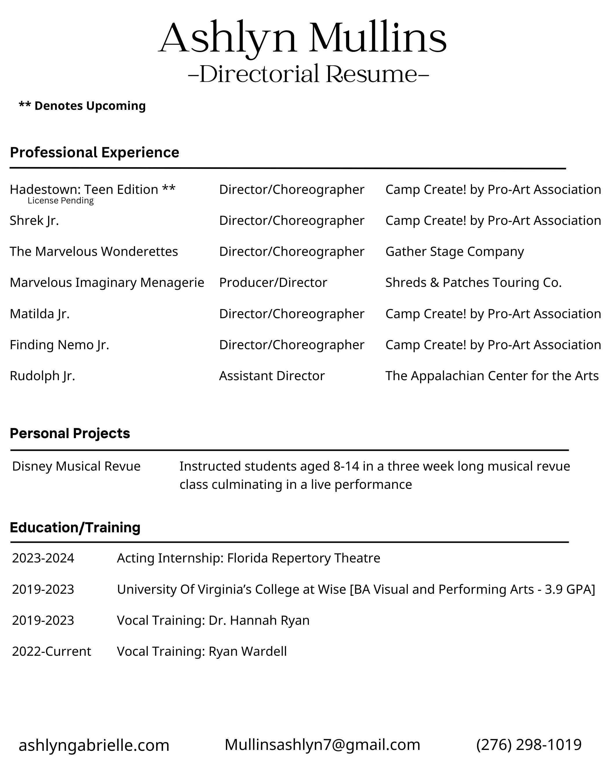 DIRECTING RESUME